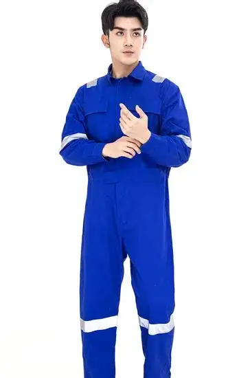 Đồng phục bảo hộ màu xanh công nhân được xử lý bề mặt để chống bám dầu, bụi và các hóa chất nhẹ, đảm bảo an toàn cho người lao động và dễ vệ sinh sau ca làm việc.